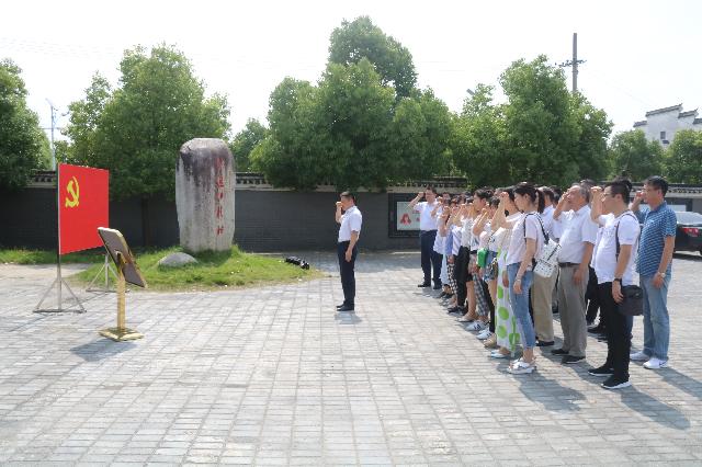 “我志愿加入中國共產(chǎn)黨,擁護(hù)黨的綱領(lǐng),遵守黨的章程……”。在渡江戰(zhàn)役總前委舊址紀(jì)念館廣場,集團(tuán)公司黨委委員、總經(jīng)理王廷睿帶領(lǐng)全體黨員重溫了入黨誓詞。